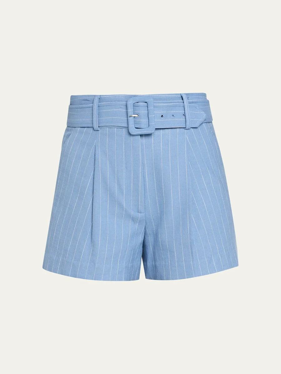 Veronica Beard "Piper" tailored shorts accented with a classic pinstripe design Approx. 3.5" inseam High rise Side slash pockets; back welt pockets Pleated front Adjustable belt Hook/zip fly; belt loops Viscose/elastane Lining: Polyester Dry clean only Made in USA from imported materials SIZE amp; FITModel measurements: 5'10" tall Model is wearing a US size 4/Small