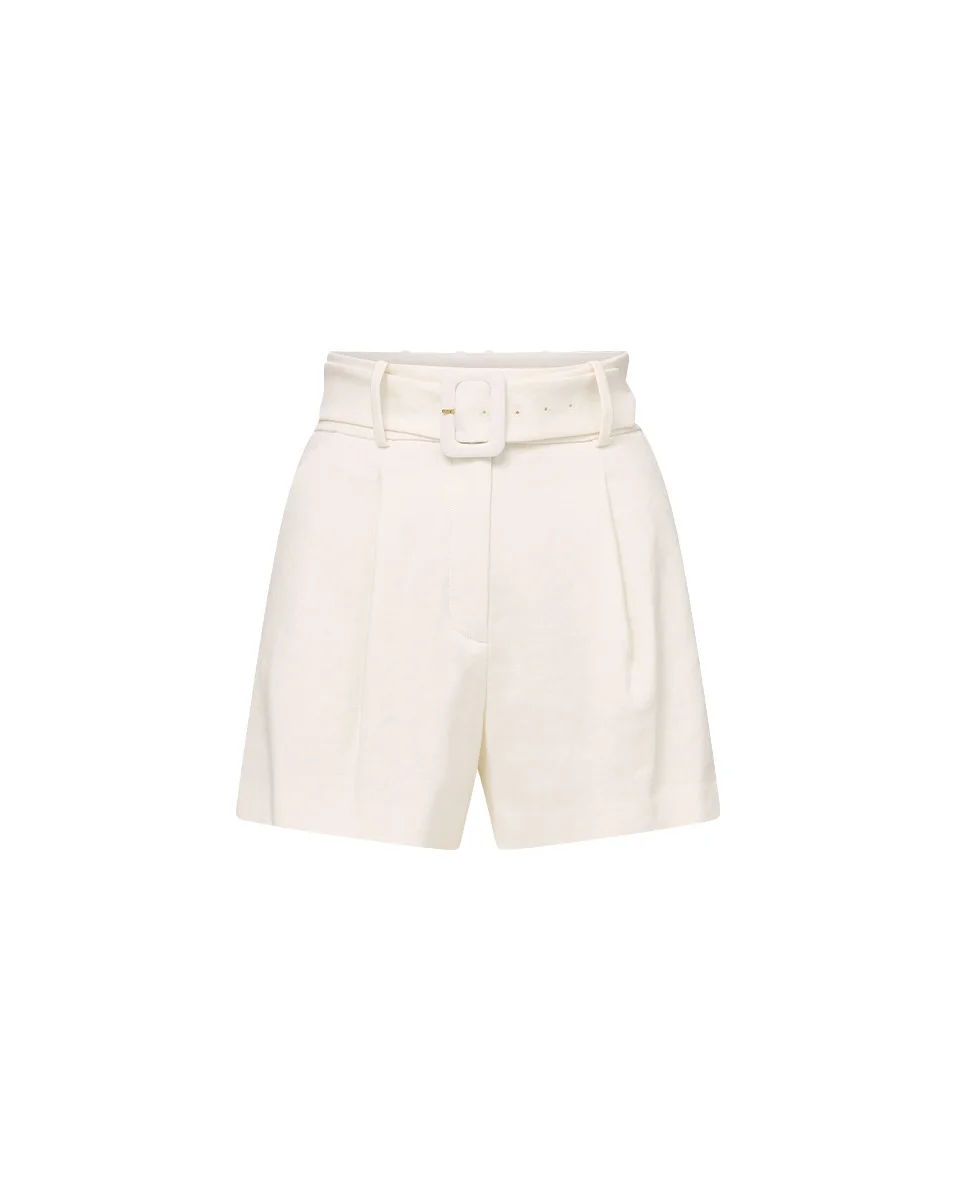 Product details The tailored short you’ll live in all season long. Expertly tailored from Italian stretch linen, the off-white Piper sits high on the waist and falls with a beautiful drape to a thigh-grazing length. With a waist-defining belt, this A-line silhouette is designed to flatter the figure, while front pleats add a sense of ease. Side and back pockets complete the look. Wear with an elongated linen blazer for a chic short-suit moment. - 55% Linen, 44% Viscose, 1% Elastane - Lining: 100% Polyester - Fabric country of origin: Italy - Dry clean only - Style #2504LN3380249