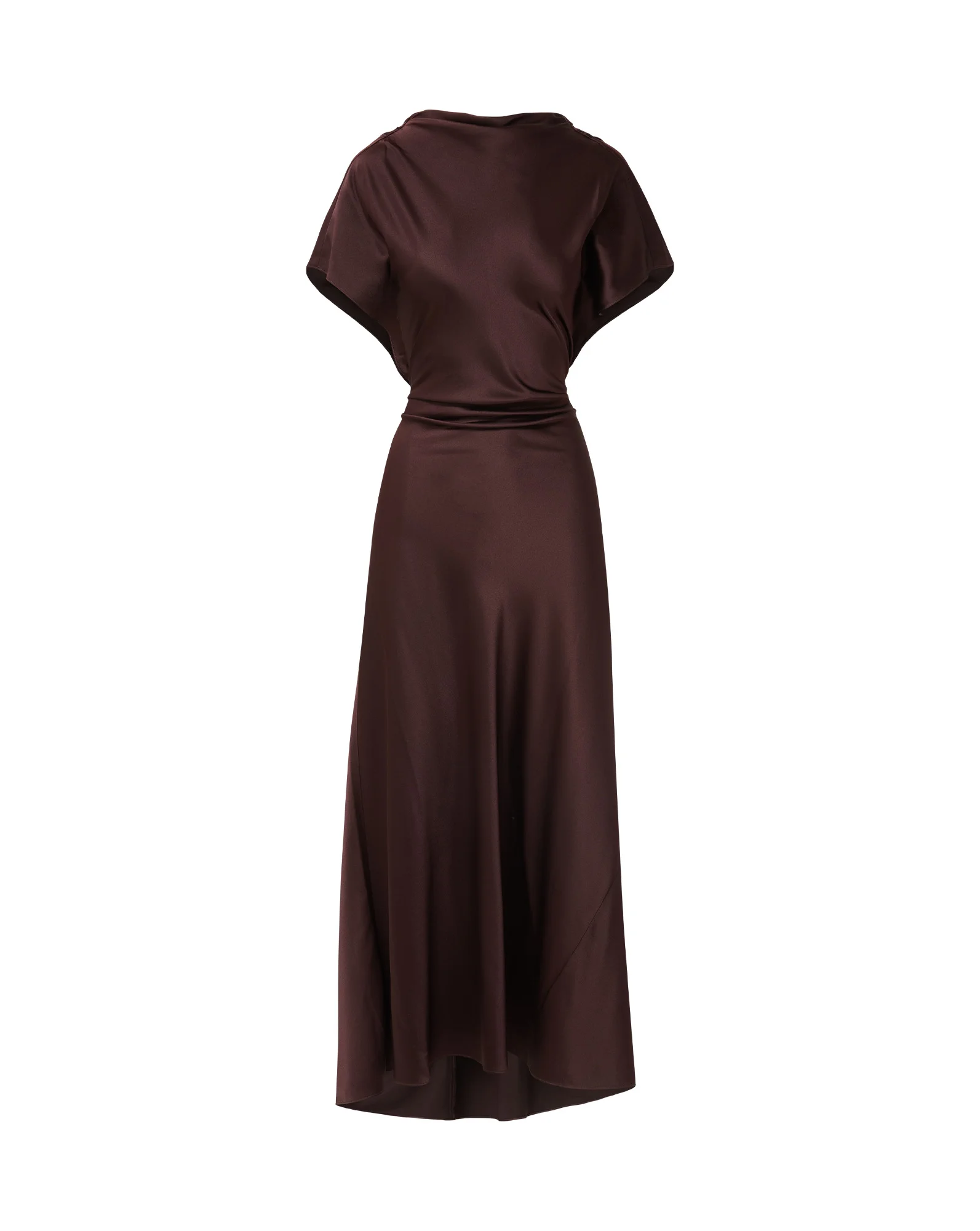 Product details Chic and sophisticated. Crafted from a luxe stretch-silk blend, the Redgrave midi dress is cut on the bias for fluid, body-skimming drape. It features a cowl neckline at the front, which falls to an elegant lower V at the back. Fluttery short sleeves and a hidden back zipper closure complete the look. Pair with strappy heels and a clutch for your next big event. - 53% Silk, 35% Viscose, 12% Elastane - Unlined - Dry clean only - Style #2509FL5021852