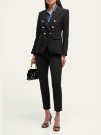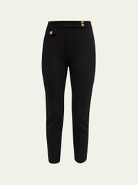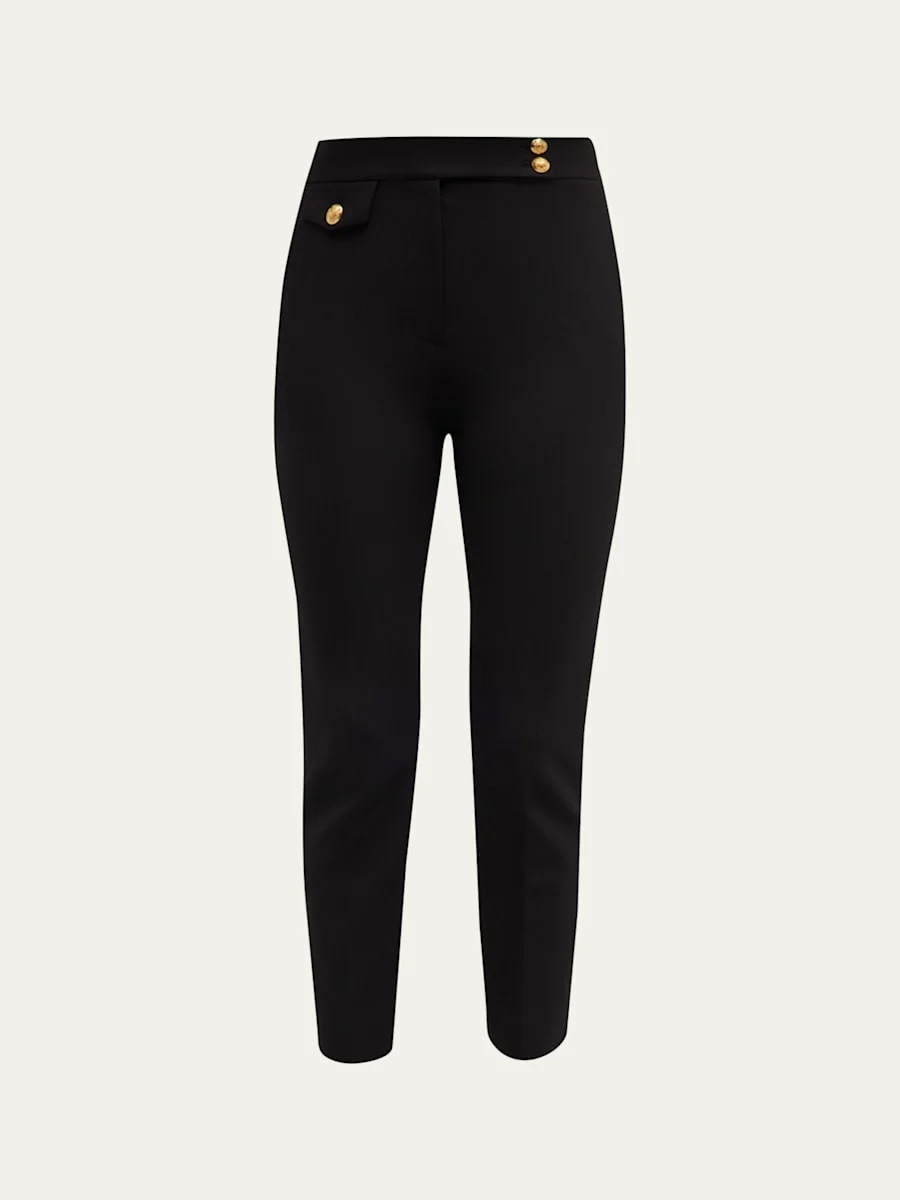Veronica Beard "Renzo" pants Approx. 26" inseam; 14" leg opening; 12" front rise; 16.5" back rise (size 8) High rise Flat front Side pockets; flap pocket Back welt pockets Straight legs Cropped at the ankle Button/zip fly Polyester/viscose Dry clean Imported