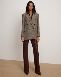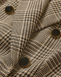 Product details The classic houndstooth blazer, updated with modern proportions. Crafted from a stretch blend in beige and black, the Rhys is tailored for a relaxed, oversized fit with an elongated silhouette. An exaggerated peak lapel and double-breasted bezel-button closure complete the look. Compatible with any of our dickeys, it’s endlessly versatile—wear with matching trousers for a polished set or dress down with denim. - 64% Polyester, 33% Viscose, 3% Elastane - Lining: 96% Polyester, 4% Elastane - Made in the USA - Dry clean only - Style #2510PL9111293