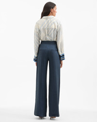 Product details The pinstripe pant, perfected. Crafted from premium Italian stretch linen, Rimini is the essential high-waisted, wide-leg trouser—nipped at the waist, softly draped through the thighs. It’s finished with hidden side slant pockets, back welt pockets, and a hook and bar closure for a clean, streamlined look. Pair it with a casual T-shirt or tank for polished ease, or style with the coordinating Obie Dickey Jacket for a crisp summer suit. - 58% Linen, 40% Viscose, 2% Elastane - Unlined - Fabric country of origin: Italy - Dry clean only - Style #2507ST3460740