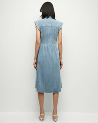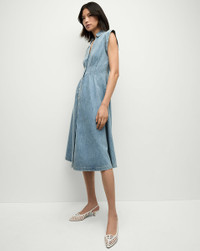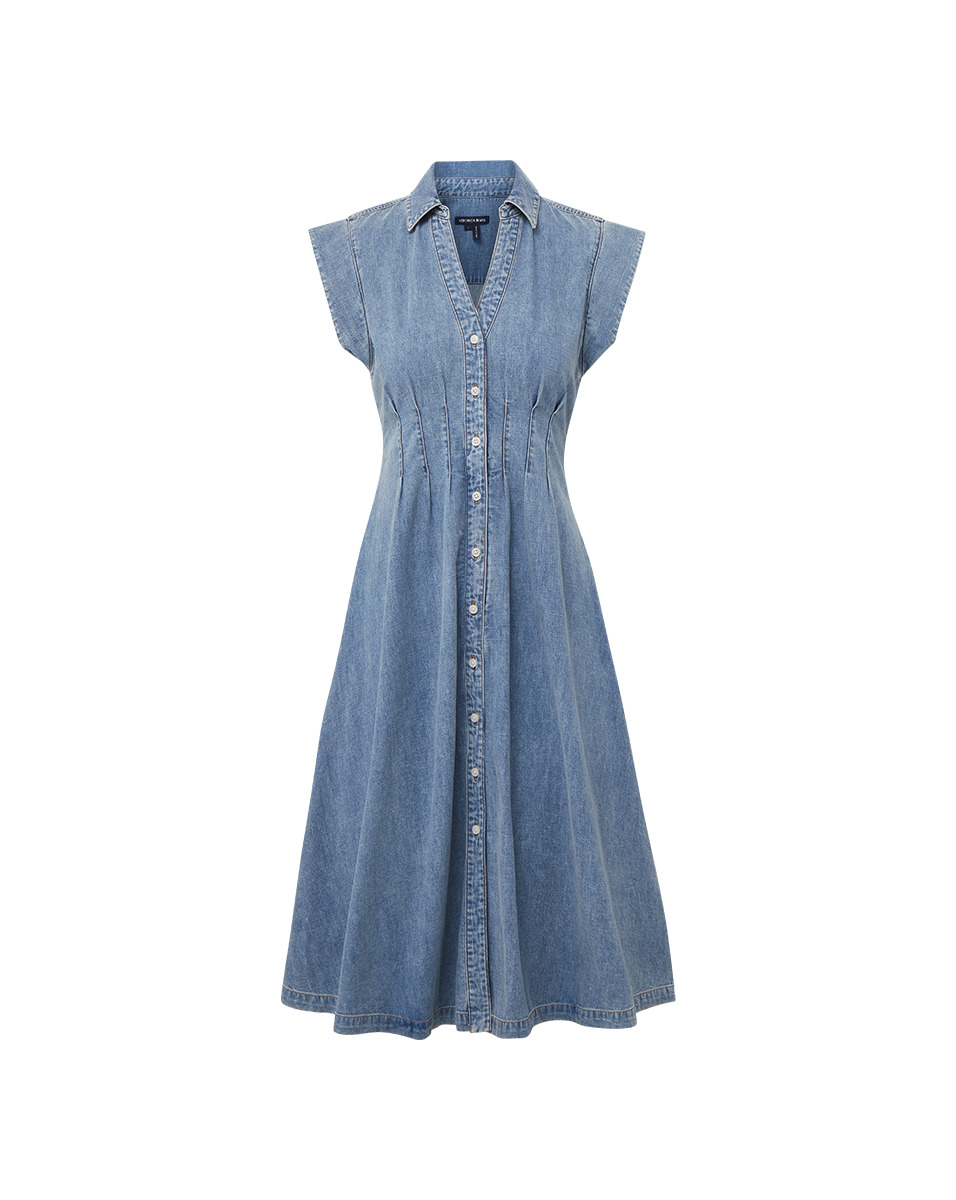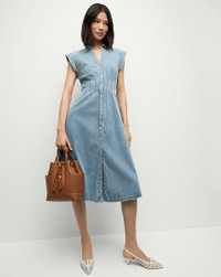 Product details A fit-and-flare shirtdress, with ease. Made from 100% cotton denim, the Ruben is a midi style defined by a relaxed fit and darting that cinches in the waist. Cap sleeves and a collared V-neck complete the look. Pair with flat sandals for getaways and everyday. - 100% Cotton - Unlined - Machine wash cold - Style #J24127100009PB