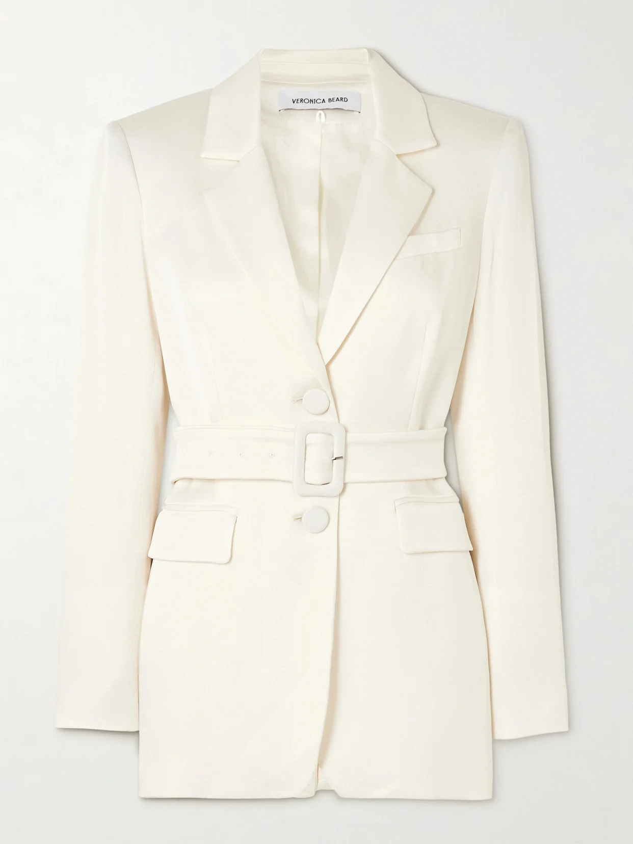 Veronica Beard's Spring '25 collection is all about effortless elegance. This 'Ryanne' blazer is tailored from fluid crepe for a slightly loose fit and has a belted waist. Team it with the coordinating pants and tonal heels.