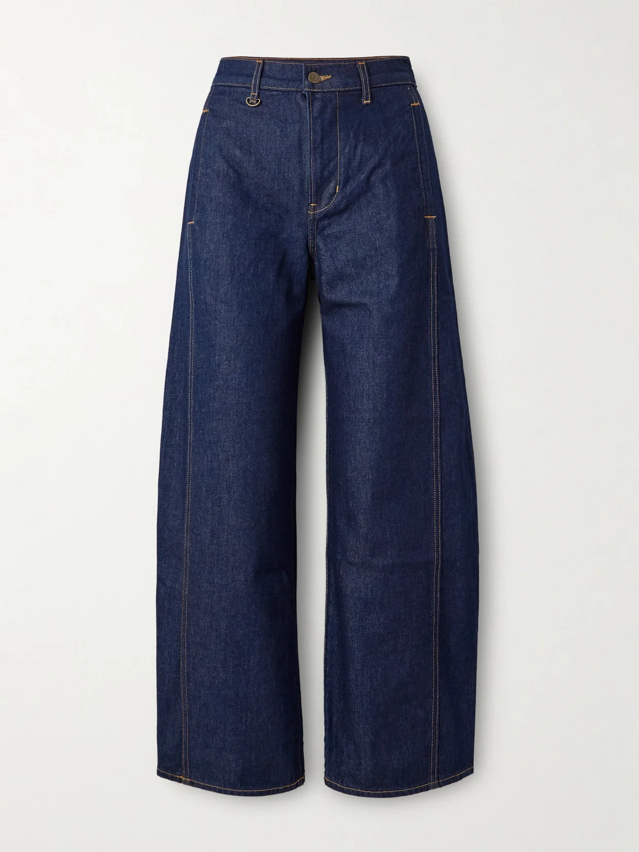 Veronica Beard's 'Ryder' jeans are made from panels of Japanese denim that create a barrel-leg shape. They have a gold-tone D-ring on the waistband, which you can attach your keys or a charm to.