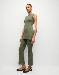 Product details Spun from a sporty stretch knit, the Semma features vertical ribbing and architectural seaming at the waist for a slight peplum effect. Wear it with everything from its matching Massaro pant to wide-leg denim. - 83% Viscose, 17% Polyester - Dry clean only - Style #2412KS1290359