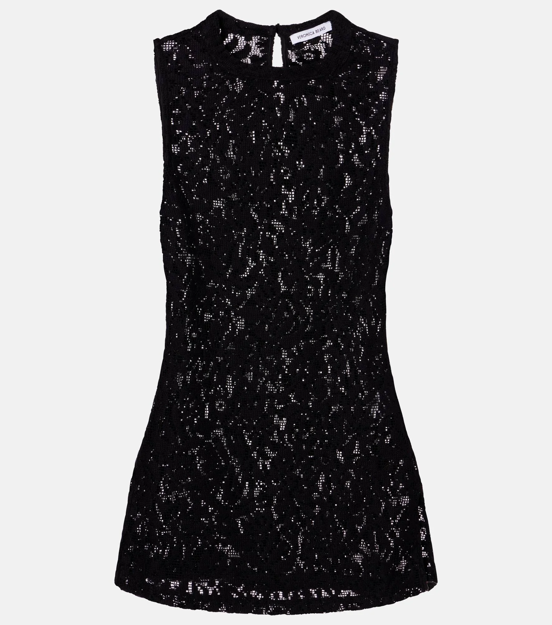 Veronica Beard's low-effort, high-impact separates find the perfect balance between casual and chic. The Serenka top is a minimalist design cut from delicate floral lace to a figure-hugging silhouette. Product Details - Material: 77% polyester, 23% cotton - Care instructions: machine wash cold - Made in Vietnam - Color: black - Designer color name: Black - Item color: black - Material II: 100% polyester - Side slits - Item number: P01142644 Size & Fit - True to size - Semi-sheer - Cinched waist - Non-stretchy fabric - Falls to the hip - Falls below the hip - The model seen in the picture is 178cm-5'10" and wearing a size XS
