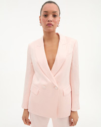 Product details Expertly tailored from a premium stretch blend, the Sevyn is an elongated blazer with a roomy fit and a beautiful drape. Pair this double-breasted silhouette with the matching Ronin pant for a matching-set moment. - 72% Acetate, 28% Polyester - Linings: 100% Polyester and 95% Polyester, 5% Elastane - Made in USA - Dry Clean Only - Style #2502CR00411375