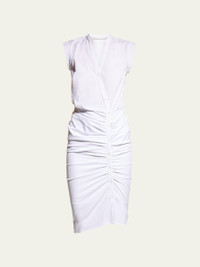 Veronica Beard poplin shirtdress in stripes. Approx. 46"L from shoulder to hem. Inverted collar; asymmetric button front. Sleeveless; extended shoulders. Sheath silhouette. Ruched through skirt. Arched hem hits knee. Cotton/spandex; dry clean. Imported. Online Inquiries: BGS21_TS0KN| Store Inquiries: #2081472