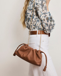 Product details A petite take on our original Stash bag—that's still roomy enough to fit the largest iPhone. Crafted from smooth, supple tan leather, this pouch bag features a softly structured silhouette with a gathered, cinchable top, finished with tasseled drawstrings. Two straps—one in leather, the other a gold snake chain—offer maximum versatility. Inside, a zip pocket and magnetic tab closure keep your essentials secure. - Leather - Lining: Microsuede - Trim: Leather - Material country of origin: USA - 10.2” L x 3” W x 5.9” H6 Handle drop: 23.2” | Strap drop: 23.2” - Closure: Magnetic snap and drawstring - Store in a cool, dry place and wipe any surface dirt with a dry cloth - Style #H2602HL124Y086