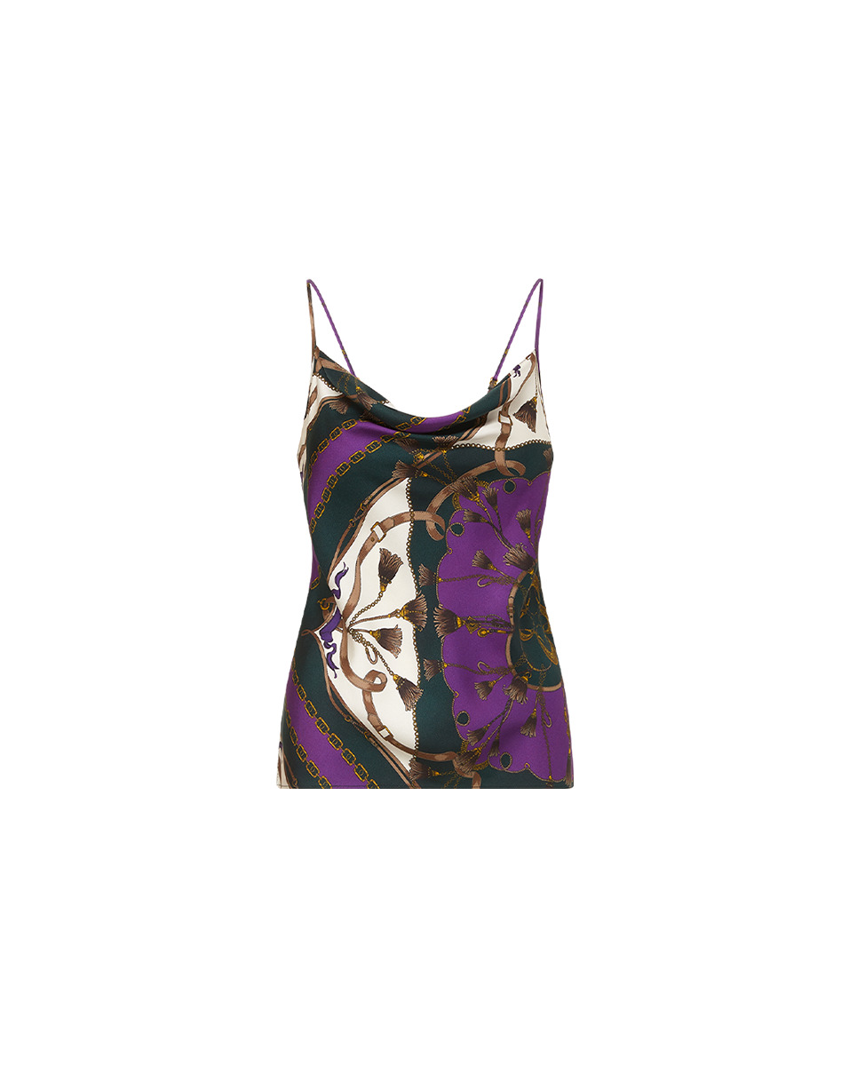 Product details Made from silk, the Sola tank top features a draped neckline and a bold print that marries graphic geometrics with trompe-l’oeil tassels and scrollwork. Pair this silk tank top with jeans and stilettos for your next night out. - 53% Silk, 35% Viscose, 12% Elastane - Dry clean only - Style #2408FL3740531