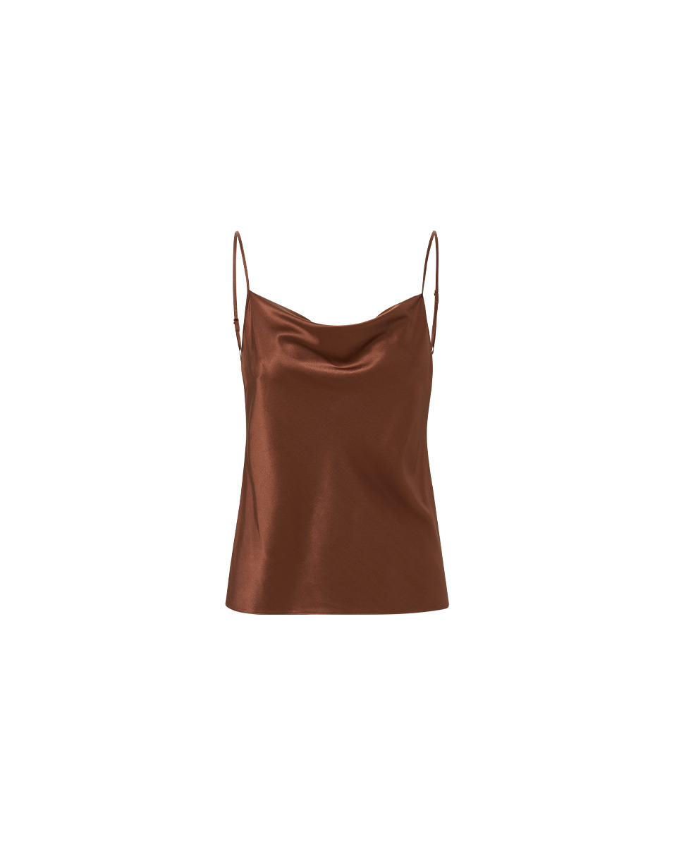 Product details An essential, elevated. Expertly crafted from stretch silk, the Sola talk top—in rich brown—will be a versatile addition to your wardrobe. The minimalist style features a draped neckline and an effortless fit. Layer under a pantsuit for work or, for a dressed-up take, wear with the Clover skirt for an elegant trompe l'oeil slip dress. - 53% Silk, 35% Viscose, 12% Elastane - Unlined - Dry clean only - Style #2504FL5040531