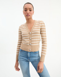 Product details A VB favorite, now updated in nautical stripes. A luxurious layering piece, the Solene is made from 100% pure cashmere and finished with silver crest buttons. Keep one on the back of your office chair—this classic works with any look - 100% Cashmere - Dry Clean Only - Style #2502KA1290254