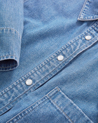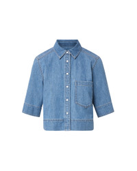 Product details The jean shirt, reimagined. Expertly tailored from lightweight, non-stretch denim, the Spruce button-down shirt features a cropped, boxy fit with dropped shoulders, and wide half sleeves for an effortless look and feel. A chest pocket and a deep hem complete the look. Pair with wide-leg jeans for a fresh take on double denim. - 100% Cotton - Turn inside out and machine wash cold. Tumble dry on low. - Style #J25057100067AF