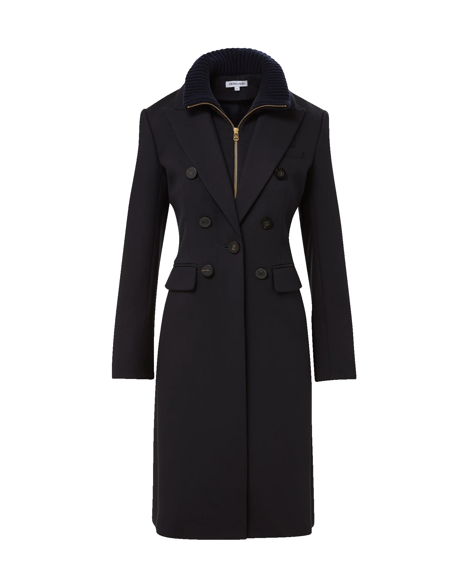 Product details A sleek coat with built-in versatility. The Stryder is crafted from premium Italian double-weave suiting fabric and designed with a fitted waist, cutaway hem, and subtle A-line shape for a flattering silhouette. A single-breasted closure with additional side buttons creates the look of a double-breasted front. A removable extra-long dickey—complete with a knit funnel neck and front zip—adds warmth and modern edge. Adding instant polish to any look, it’s a staple you’ll reach for all season long. - 65% Viscose, 15% Acrylic, 12% Polyester, 8% Wool - Lining: 100% Viscose - Fabric country of origin: Italy - Dry clean only - Style #2508OW12270386
