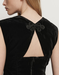 Product details An elevated take on the LBD. Crafted from soft black velvet, the Svetlana mini dress features a sleeveless, A-line silhouette, finished with a back cutout and an embroidered single-button closure. Elegant yet modern, it’s a chic choice for evening and event dressing. Pair it with slingback heels for your next date night. - 75% Rayon, 25% Polyamide - Lining: 100% Polyester - Dry clean only - Style #2510VL1521869