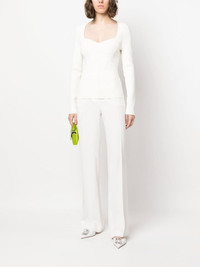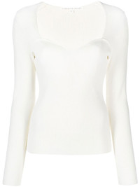sweetheart ribbed knit top ivory white stretch-design ribbed knit sweetheart neck long sleeves straight hem Imported Composition Viscose 71%, Nylon 16%, Polyester 11%, Spandex/Elastane 2% SIZE & FIT Model measurements Height 5 ft 10 in(1.79 m) Bust/Chest 32.67 in(83 cm) Hips 34.25 in(87 cm) Waist 24.4 in(62 cm) FittingInformation This piece fits true to size. We recommend you get your regular size Cut for a slim fit Made with a mid-weight fabric Washing instructions Dry Clean Only