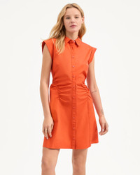 Product details The shirtdress, with a VB twist. Ruching at the waist flatters the figure while the cap sleeves, with oversized arm holes, add a dose of laid-back ease. Expertly tailored from premium stretch cotton, this is perfect for getaways and everyday—just add sandals. - 97% Cotton, 3% Elastane - Dry clean only - Style #2503SCP21021