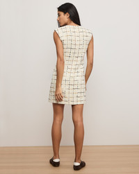 Product details We took everything you loved about the Tamara vest and reimagined it as a chic mini dress. Expertly tailored from navy Italian tweed with metallic accents, the Tamara features a slim-fitting shift silhouette. Finished with welt pockets, a full button-down placket, and jewel neckline, it’s the dress you’ll reach for when polished is the goal—just add slingbacks or tall boots and go. - 35% Acrylic, 32% Cotton, 23% Polyester, 7% Polyamide, 2% Viscose, 1% Metallized Fiber - Lining: 96% Polyester, 4% Elastane - Fabric country of origin: Italy - Made in the USA - Dry clean only - Style #2508TW11421733