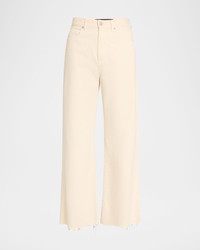 Veronica Beard "Taylor" wideleg jeans featuring a raw hem in offwhite denim High rise Fivepocket style Loose fit Cropped length Button/zip fly; belt loops Cotton Made in USA