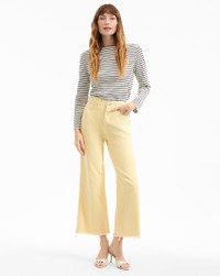 Product details The Taylor you know and love—now in trending butter yellow with cropped ankle to better showcase your shoes. Crafted from premium non-stretch Japanese denim, this high-rise, wide-leg jean will be your versatile new go-to. Style with a tee and flats for day; dress it up with a silky blouse and heels for nights out. - 100% Cotton - Made in USA from premium Japanese denim - Turn inside out and machine wash cold. Hang to dry. - Style #J25059501152C6