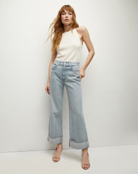 Product details The Taylor you know and love—now with a cropped, cuffed hem to better showcase shoes. Made from 100% non-stretch cotton, this high-rise, wide-leg silhouette is a VB favorite. The versatile length works well with flats and heels alike. - 100% Cotton - Premium Turkish denim - Turn inside out and machine wash cold. Hang to dry. - Style #J24069271152AC