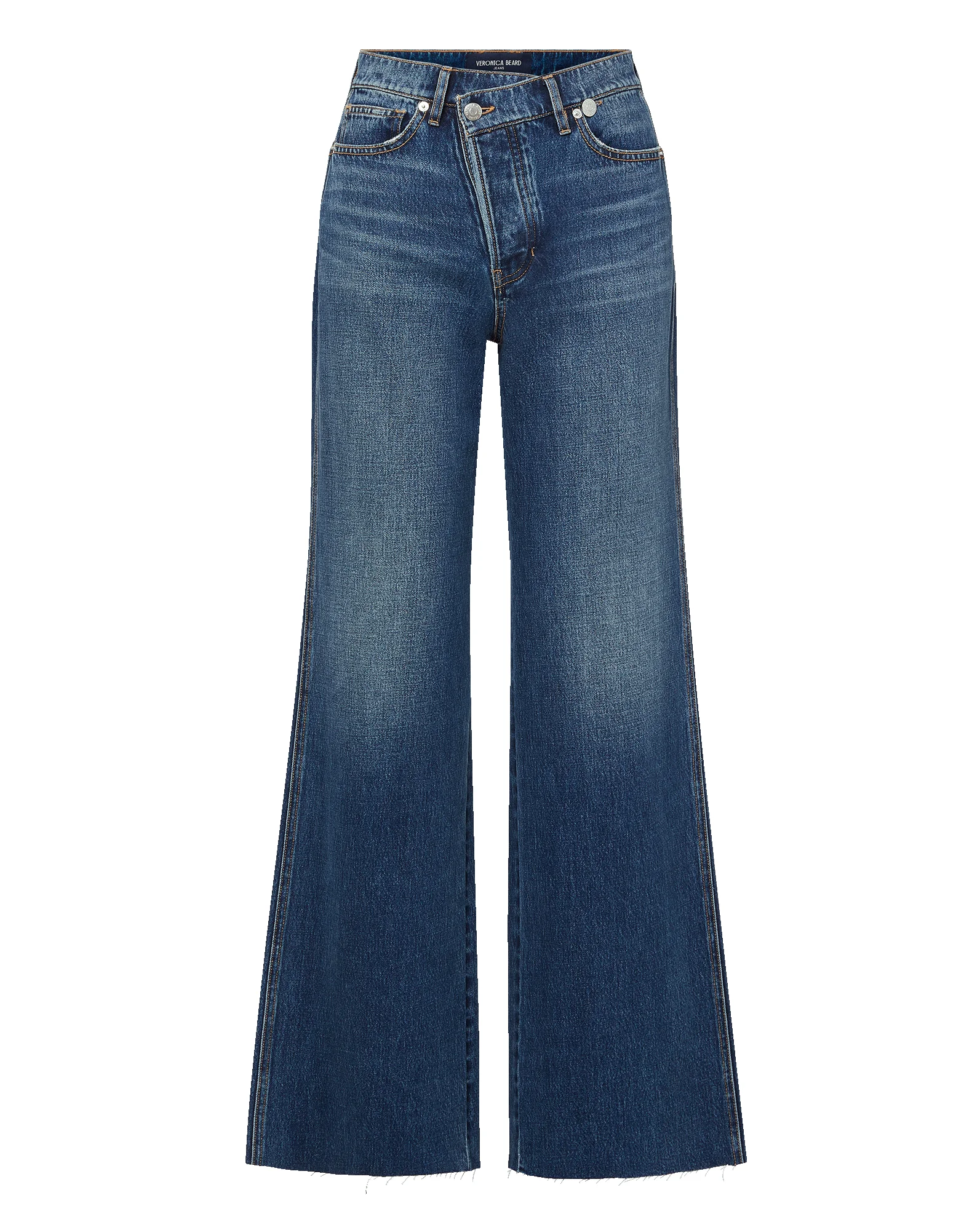 Product details The Taylor jeans you know and love—now with a crossover waistband and button fly. This VB favorite features a high-rise, wide-leg silhouette and is expertly made with our signature Dream Denim—our impossibly soft, most comfortable denim yet—in a deep blue wash. Pair with a simple button-down for a cool off-duty look, or a dickey jacket for instant polish. - 94% Cotton, 6% Silk - Closure: Button fly - Turn inside out and machine wash cold with like colors. Tumble dry on low. - Style #J2603D351040C8