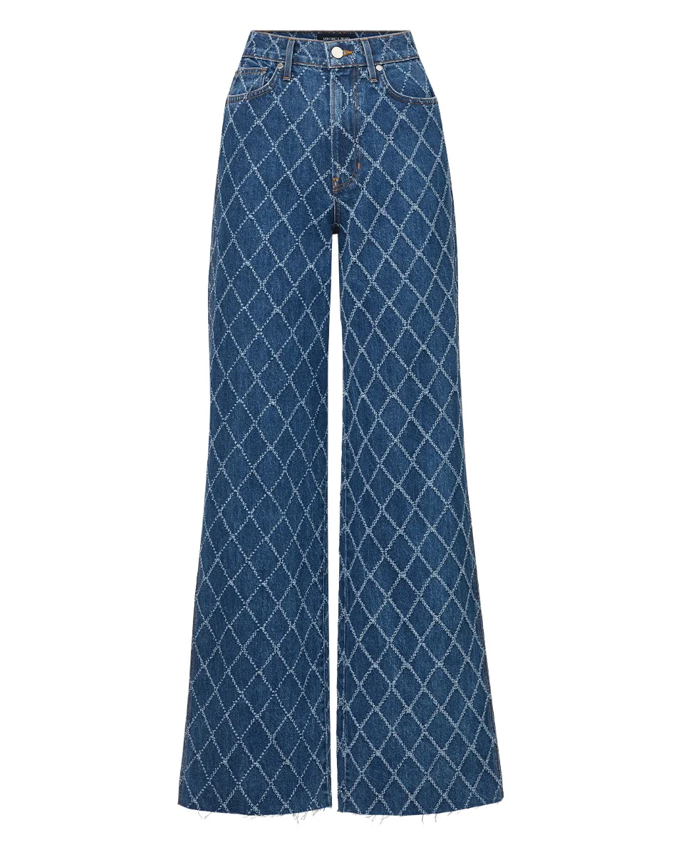 Product details The Taylor you know and love—now boasting a graphic, laser-printed diamond pattern. Made in LA from non-stretch Italian denim, it features a high-rise waist and a wide-leg silhouette that falls to a raw-edged hem. Pair with a simple button-down for an off-duty statement look. - 100% Cotton - Made in USA from premium Italian denim - Turn inside out and machine wash cold. Hang to dry. - Style #J25029381040PF