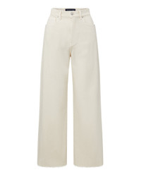 Updated in fresh ecru, the Taylor is a classic high-rise and wide-leg style in non-stretch denim. Made in LA from premium Japanese denim, this wear-forever jean also features a raw hem for a fashion-forward finish. Pair with everything from tonal silk blouses to plain white tees for a chic and easy look. DETAILS & FIT - 100% Cotton - Rise 12" | Inseam 27" | Leg opening 22", based on a size 26 - Our model is 5'10" and is wearing a size 26 - Premium Japanese denim - Made in LA - Machine wash on cold - Style #J23129501152EC - Rigid - Comfort Stretch - Stretch
