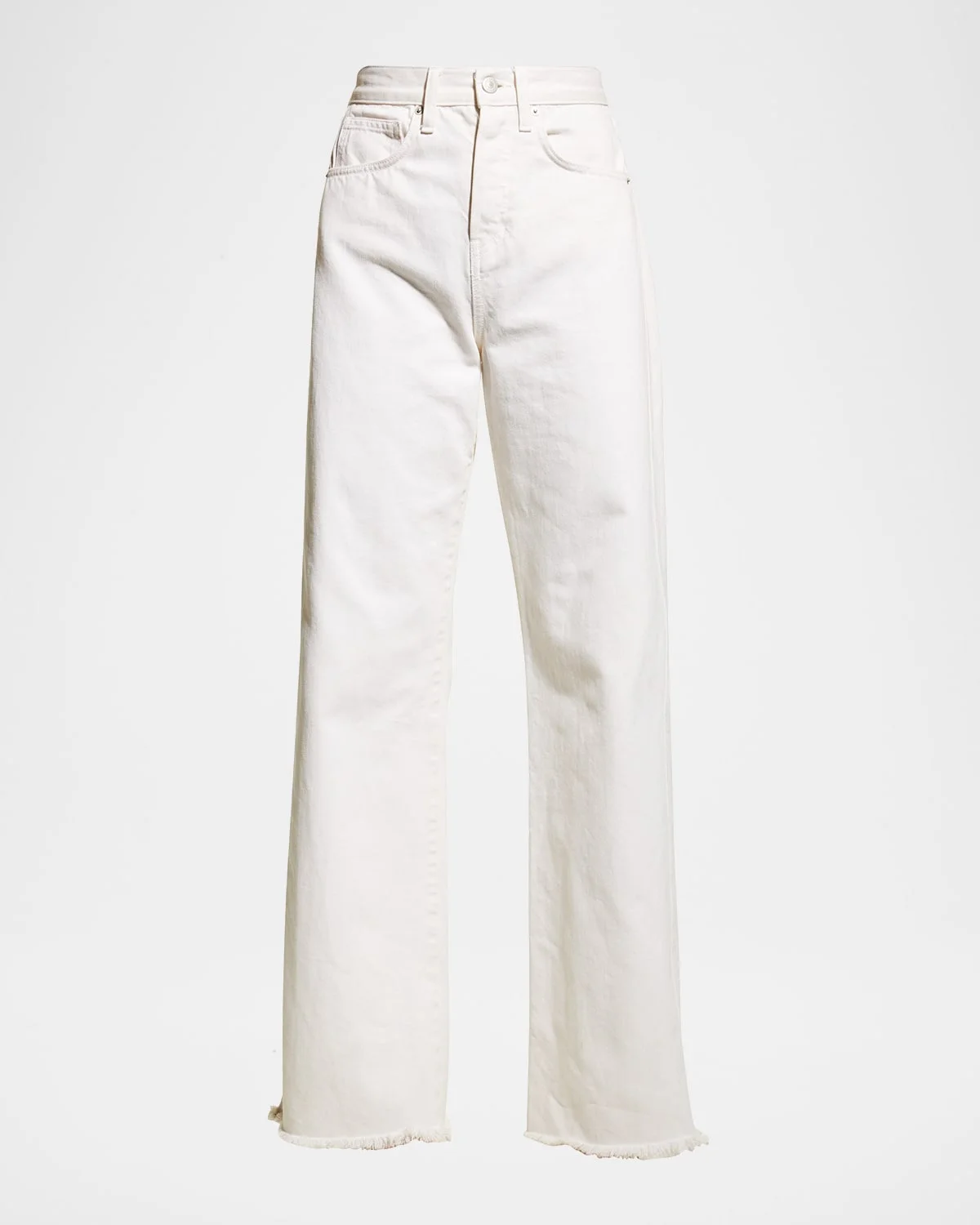 Veronica Beard Jeans "Taylor" relaxed wideleg jeans with frayed hems Approx. 32" inseam High rise Fivepocket style Button/zip fly; belt loops Full length Cotton Made in USA from imported materials