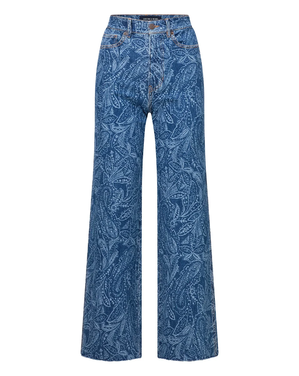 Product details Our best-selling Taylor Jean—now updated for spring in a chic boho print. Crafted from premium Italian denim with stretch for ease, this versatile style features the same high-rise waist and full-length, wide-leg silhouette you know and love, now laser-printed with an allover paisley pattern. Style with a breezy linen top for laid-back ease, or pair with the matching jacket and heels for an elevated double-denim look. - 98% Cotton, 2% Elastane - Premium Italian denim - Turn inside out and machine wash cold. Hang to dry. - Style #J25037211040AA