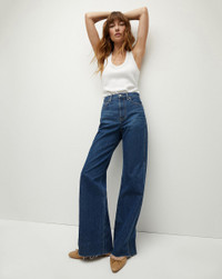 Product details Meet the Taylor, a classic high-rise, wide-leg jean—now updated in a timeless blue wash. Made in LA from non-stretch premium Italian denim, this wear-forever style will be your new versatile go-to. Style with a tee and flats for day; dress it up with a printed top and heels for nights out. - 100% Cotton - Premium Italian denim - Made in LA - Turn inside out and machine wash on cold - Style #J24031681040SB