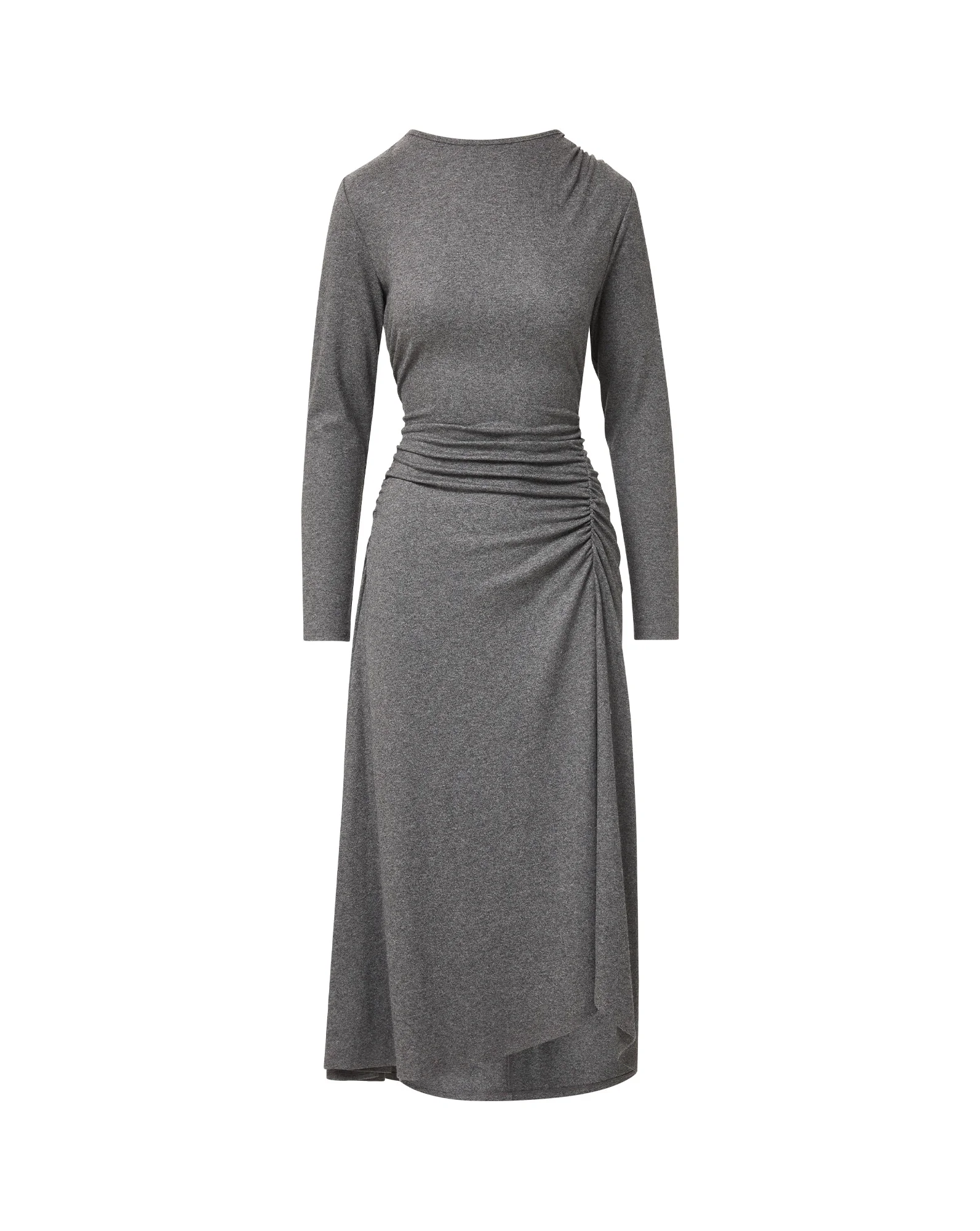 Product details The one-and-done dress, perfected for cooler months. The Theodora is crafted from a premium Italian wool blend with subtle stretch for ease. A sleek boatneck and ruching at the waist create a flattering silhouette, while the high-low A-line skirt adds elegant draping and fluid movement. Pair with tall boots or heels for a polished look that seamlessly transitions from day to night. - 39% Wool, 29% Polyester, 29% Viscose, 3% Elastane - Fabric country of origin: Italy - Dry clean only - Style #2509JY18221163