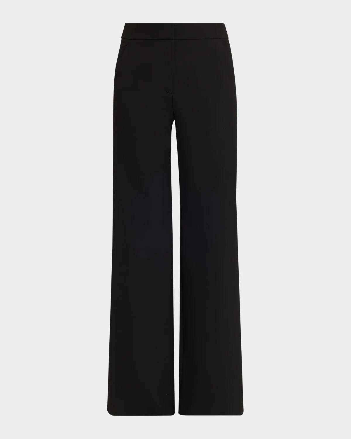 Veronica Beard "Tonelli" wide-leg pants crafted from a sleek stretch-blend & nbsp; Approx. 11.5" rise; 34" inseam & nbsp; High rise Four-pocket style & nbsp; Flat front & nbsp; Tailored fit & nbsp; Full length Hook/zip fly & nbsp; Polyester/viscose/cotton Dry clean only & nbsp; Made in USA from imported materials SIZE & FITModel measurements: 5 & apos;10" tallModel is wearing a US size 4/Small