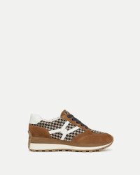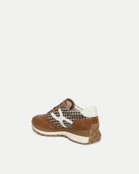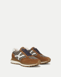 Product details The Valentina sneaker combines flattering lines with all-day comfort—featuring a padded collar, cushioned midsole with a one-inch lift, rubber outsole for grip, and suede accents at the toe cap and heel. The interlocking-V design offers a subtle nod to our logo, while the houndstooth body adds dimension. Equal parts sporty and chic, this lightweight, two-tone style is your new go-to for days on the move. - Suede, Fabric - Lining: Leather - Store in a cool, dry place inside a dust bag - Clean under the supervision of a specialist - Style #I5802MG259