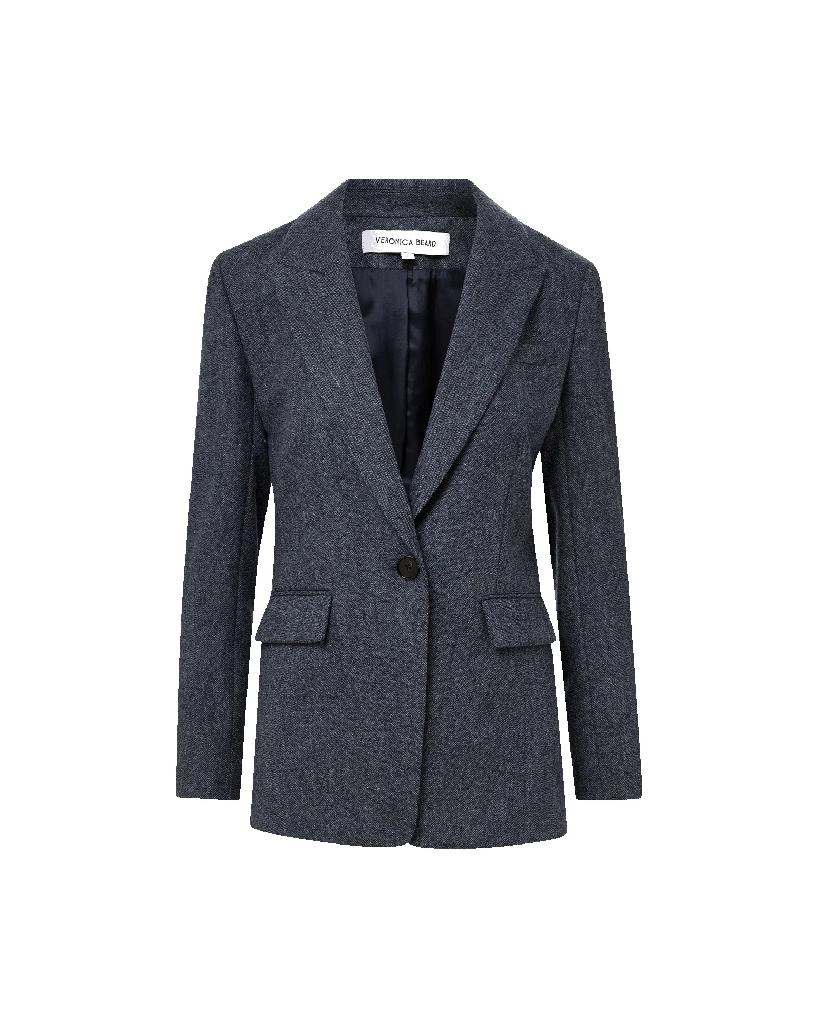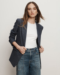 Product details Modern power tailoring. Expertly crafted from blue melange Italian wool, the Vega jacket is cut for a slim, elongated fit and features a peak lapel, single-button closure, and front flap and welt pockets. Style with everything from wide-leg denim to slim trousers for instant polish—then add your favorite dickey to complete the look. - 100% Virgin Wool - Lining: 100% Viscose - Fabric country of origin: Italy - Dry clean only - Style #2511SU9610830