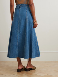 Veronica Beard's 'Alix' midi skirt has an A-line shape with raw edges for a relaxed feel. It's made from panels of denim and designed to sit high on the waist. Wear yours with mules or knee boots. Size & Fit - Fits true to size, take your normal size - Midi-length, designed to be worn at the waist - Mid-weight, slightly stretchy denim - Model is 177cm/ 5'10" and is wearing a US 2 Model measurements: - Bust: 77cm/ 30.5" - Waist: 62cm/ 24.5" - Hip: 88cm/ 34.5" Details & Care - Blue denim - Buttons and concealed zip fastening along front - 98% cotton, 2% elastane - Machine wash