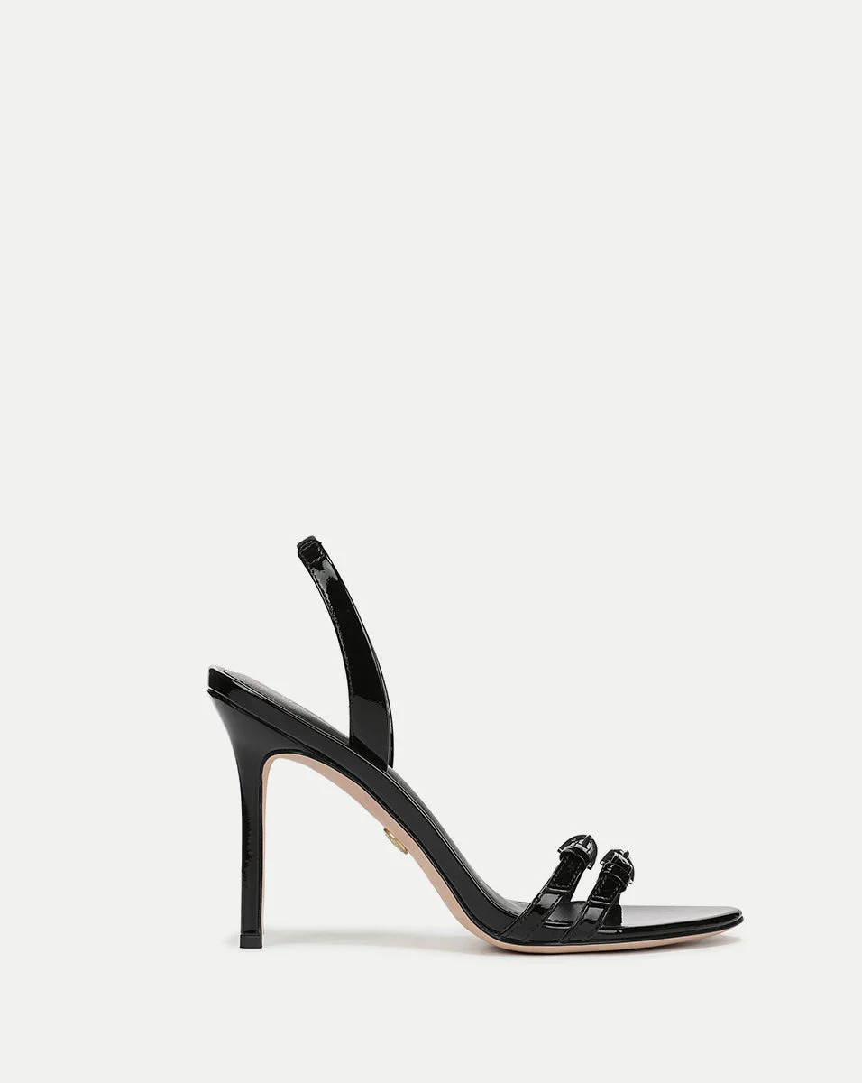 Product details A sleek slingback to take you from desk to drinks. The Austin is crafted in glossy black patent leather and features double buckled straps, a rounded toe, and an elasticated slingback strap. A four-inch stiletto heel elongates the leg, making this shoe a sleek choice with everything from mini dresses to wide-leg pants. - Patent - Lining: Leather - Heel Height: 4” - Store in a cool, dry place in a dust bag - Clean under the supervision of a specialist - Style #J7096L1001