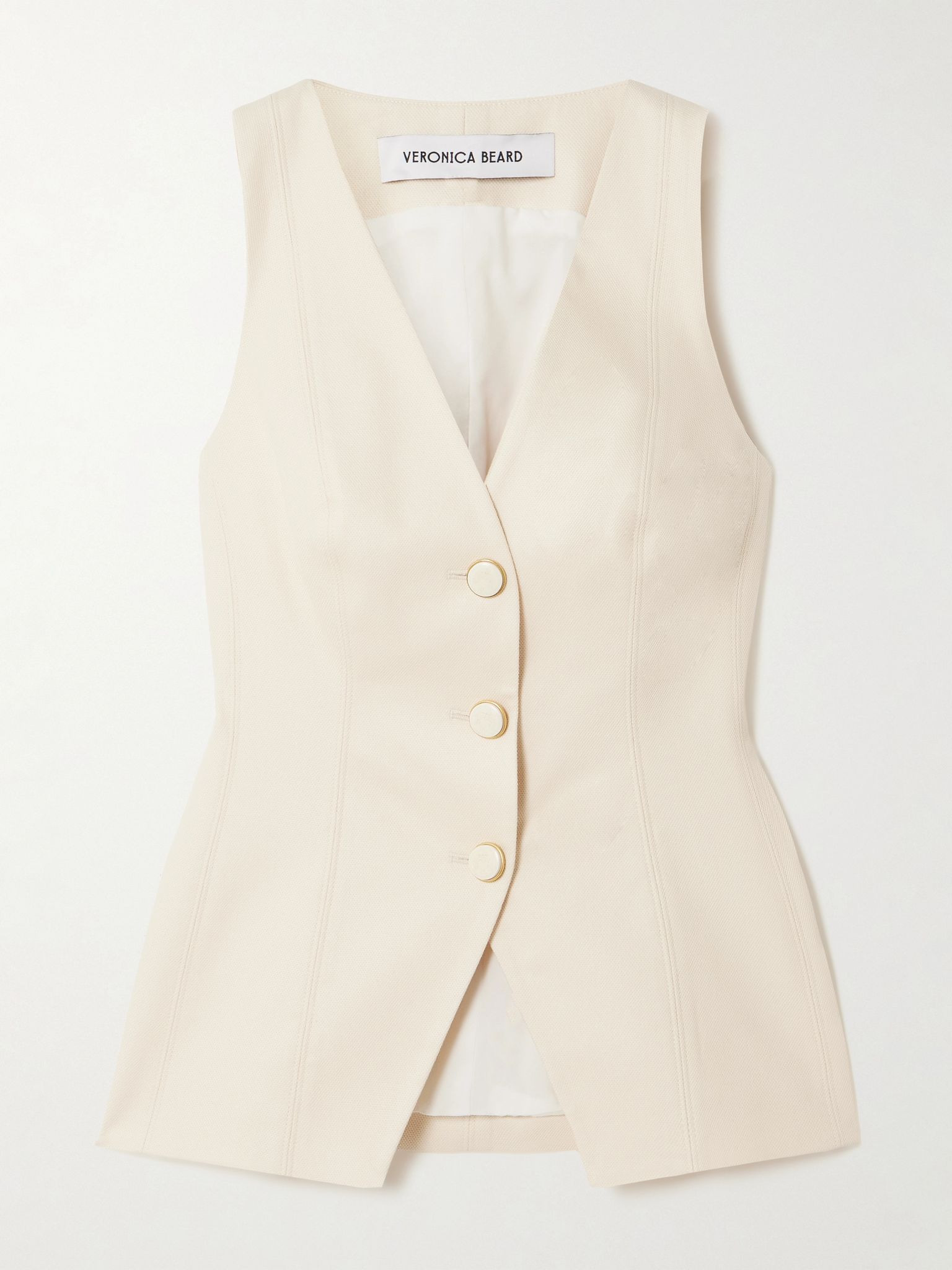 Veronica Beard's 'Avalina' vest is a subtle nod to the utility look. Tailored from honeycomb-textured Lyocell-blend, it has darts to highlight your figure and is traced with crest-engraved buttons. The split hem sits perfectly over skirts or pants. Size & Fit - Fits true to size, take your normal size - Designed for a close fit - Mid-weight, non-stretchy fabric - Model is 177cm/ 5'10" and is wearing a US 2 Model measurements: - Bust: 85cm/ 33” - Waist: 66cm/ 26” - Hip: 92cm/ 36” Details & Care - Ecru Lyocell-blend - Button fastenings through front - 55% Lyocell, 42% cotton, 3% elastane; lining: 100% polyester - Fully lined - Dry clean