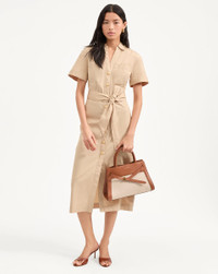 Product details The aptly named Dash is a go-anywhere bag that takes you from work to weekends. Crafted from linen canvas with leather details, including an adjustable belted strap, this two-tone style is designed with both a structured top handle and a removable shoulder strap for maximum versatility. An interior zip pocket keeps smaller items organized and secure. - 7% Linen, 18% Cotton, 10% Polyurethane, 45% PVC with leather details - Fabric country of origin: Italy - 13” L x 6” W x 9” H - Handle drop: 5”; strap drop: 23” - Store in a cool, dry place and wipe any surface dirt with a dry cloth - Style #H2411HCA06V027