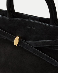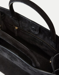 Product details The aptly named Dash is a go-anywhere bag that takes you from work to weekends. Crafted from soft Italian suede with an adjustable belted strap, it’s designed with both a structured top handle and a removable shoulder strap for maximum versatility. - Italian suede - Lining: Italian suede - 13” L x 5.7” W x 8.7” H - Handle drop: 4.7”; strap drop: 22.8” - Store in a cool, dry place and wipe any surface dirt with a dry cloth - Style #H2408HL106V015