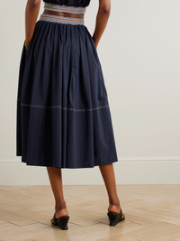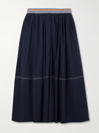 Evelina gathered striped cotton and silk-blend midi skirt Navy