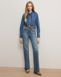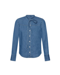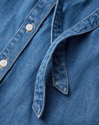 Product details A denim shirt with a feminine twist. Crafted from premium non-stretch denim in a classic blue wash, the Gabby button-down features a relaxed fit and a split collar finished with a self-tie neckline. Perfect for elevating the everyday, tuck it into tailored trousers for work or pair with jeans for a modern double-denim look. - 100% Cotton - Machine wash cold. Tumble dry. - Style #J25087100147SY