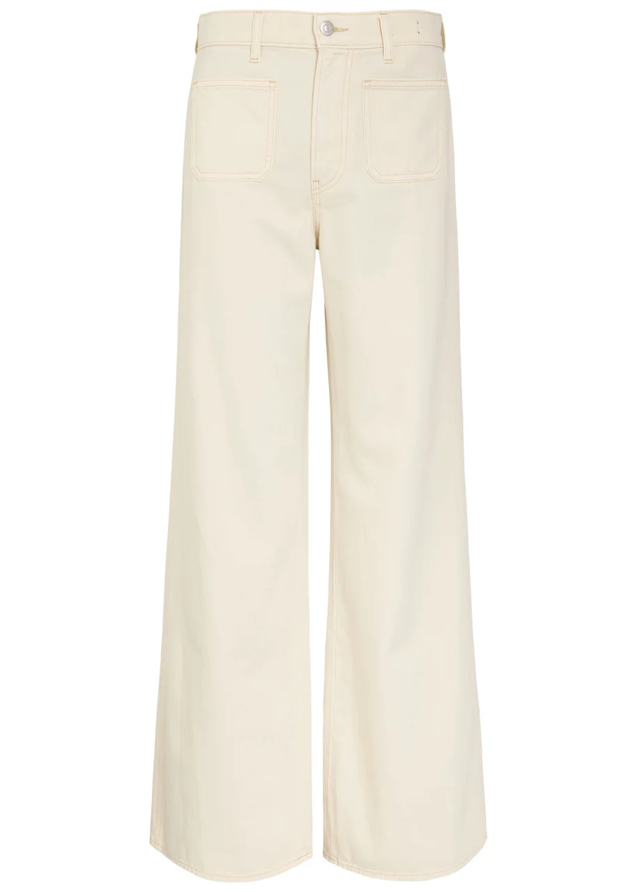 Info & Care Veronica Beard denim jeans; Mid-rise fit, wide-leg cut, belt loops, four patch pockets Partially concealed button and zip fastenings at front; 72% cotton, 21% lyocell, 7%;silk Machine wash cold inside out to avoid colour transfer; Size & Fit Front rise: 10.5 inches/ 27cm Inside leg length: 33 inches/ 84cm Midweight Model is 5'10"/ 178cm and wears a size;W27