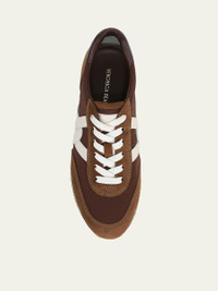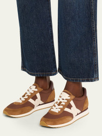 Veronica Beard "Penrose" low-top sneakers in colorblocked leather, suede and fabric 1.00 in / 25 mm no heel or flat heel Round toe Lace-up vamp Rubber outsole Lining: Leather Spot clean Imported Online Inquiries: BGS21_X6XHF| Store Inquiries: #5039148