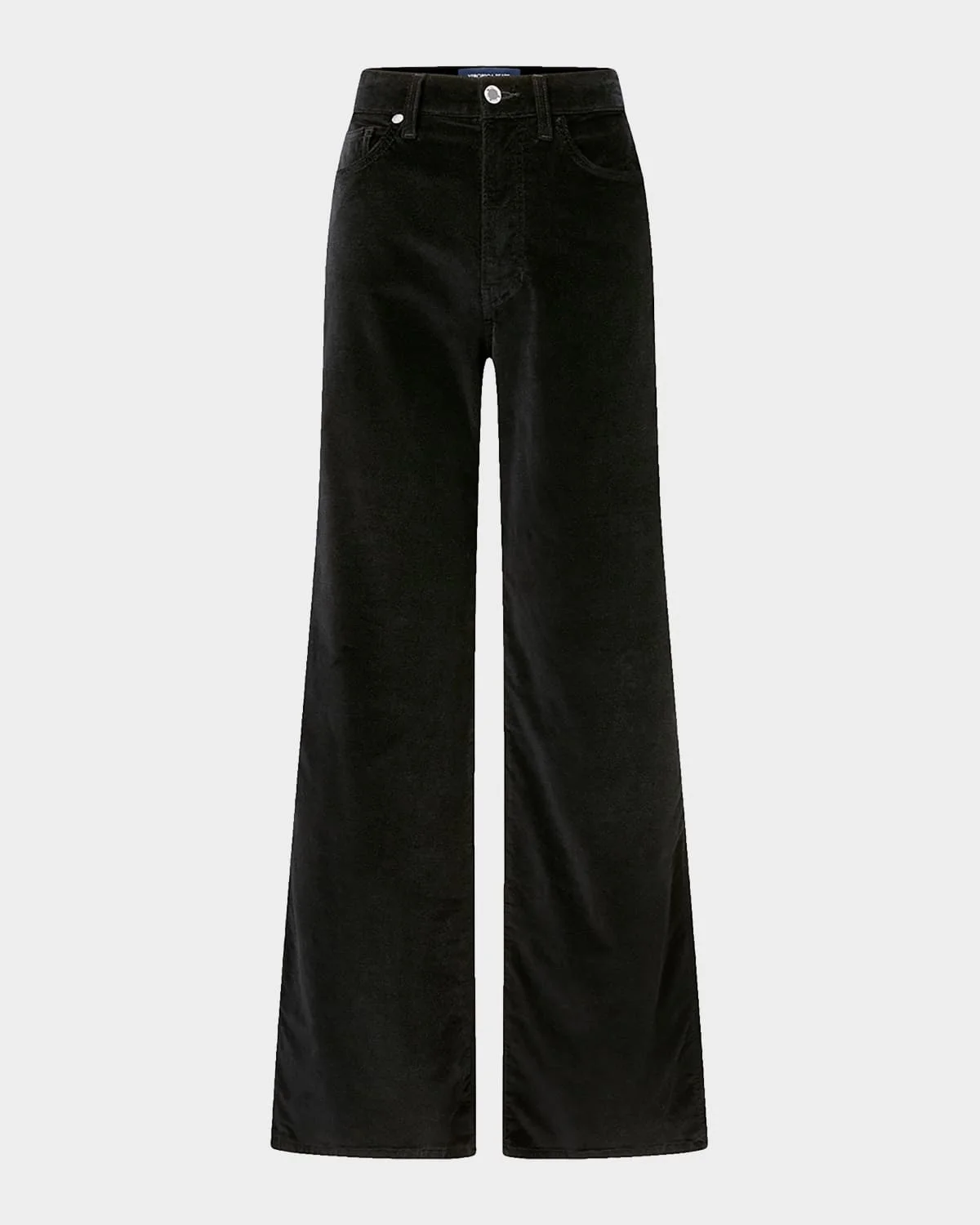 A signature Veronica Beard silhouette, the "Taylor" pants by are updated for a chic, holiday statement in soft velvet. Approx. 12" rise; 32" inseam High rise Fivepocket style Wide legs Full length Button/zip fly; belt loops Cotton/modal/polyester Machine wash cold, inside out Made in USA