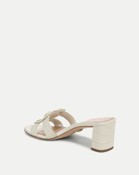 Product details Crafted from ecru croc-embossed leather, the Via open-toe sandal defines sophisticated simplicity. It features a clean, multi-strap design punctuated by gold hardware and a two-inch block heel—high enough to flatter, low enough for ease. A cushioned footbed ensures comfort. Easily dressed up or down, the slide carries you from day to night, coffee to cocktails. - Leather - Lining: Leather - Heel height: 2.125” - Store in a cool, dry place inside a dust bag - Clean under the supervision of a specialist - Style #J8309L1100