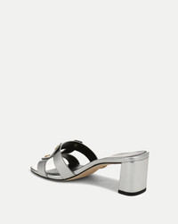 Product details Crafted from high-shine silver leather, the Via open-toe sandal is party ready. It features a clean, multi-strap design punctuated by gold hardware and a two-inch block heel—high enough to flatter, low enough to dance in. A cushioned footbed ensures comfort. Style with an LBD for a special night out—or wear with jeans to elevate the everyday. - Leather - Lining: Leather - Heel height: 2.125” - Store in a cool, dry place inside a dust bag - Clean under the supervision of a specialist - Style #J8309L3020