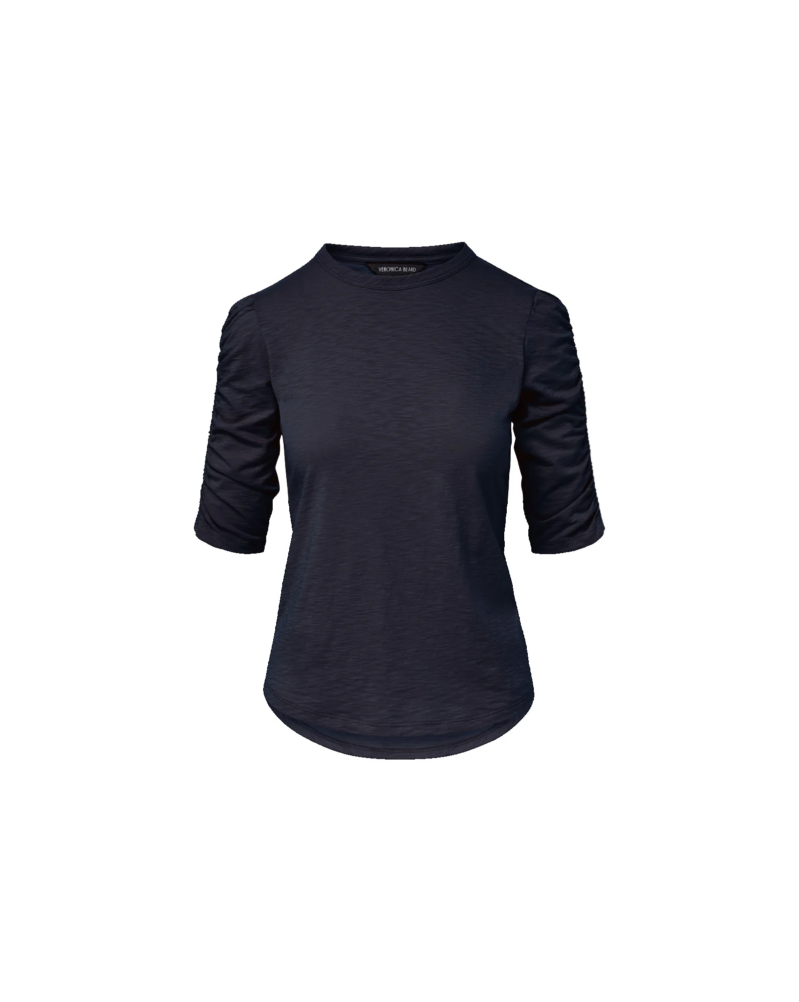 Product details A feminine take on the everyday t-shirt. Made from 100% cotton for a soft, breathable feel, this essential tee is elevated with our signature ruching along the elbow-length sleeves. Wear this casual-cool style with high-rise jeans for a chic and polished look. Available in navy and coral. - 100% Cotton - Turn inside out and machine wash cold. Tumble dry on low. - Style #J2506JY0070567