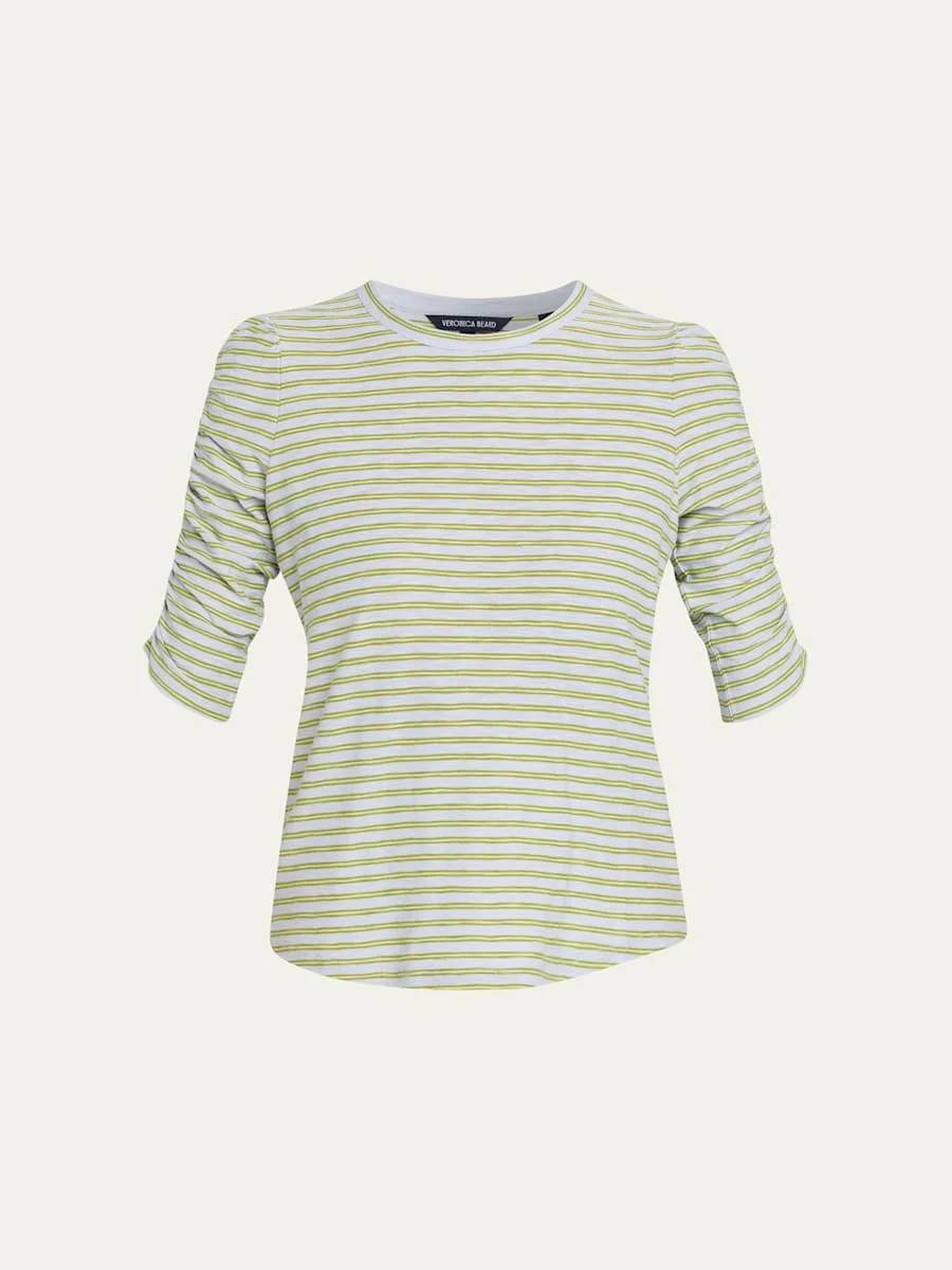 Veronica Beard "Waldorf" tee finished with shirred sleeves crafted from premium Pima cotton. Crew neckline Elbowlength sleeves Relaxed silhouette Curved hem Pullover style Cotton Unlined Machine wash cold Made in Peru SIZE amp; FITModel measurements: 5'10" tall Model is wearing a US size 4/Small